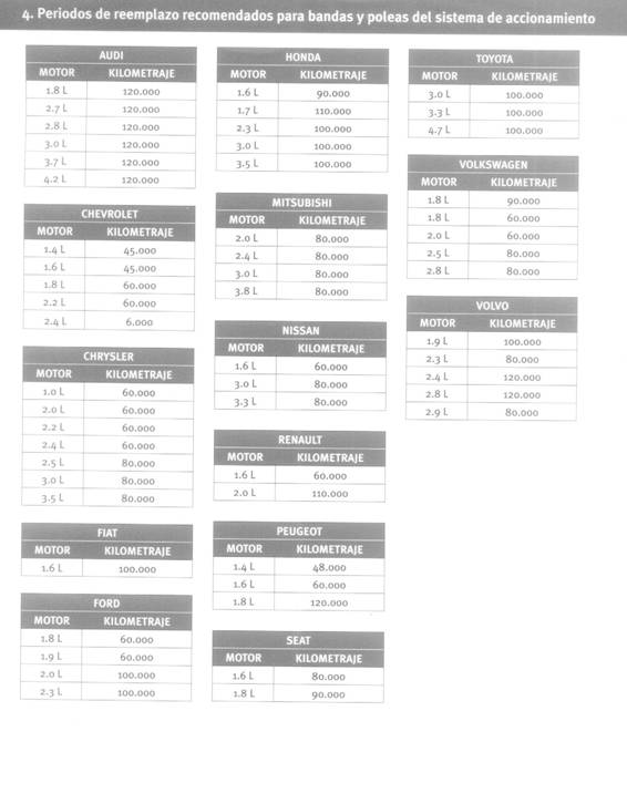 Aquí se muestra una tabla para darnos una idea de la frecuencia de cambio de las bandas de distribución.