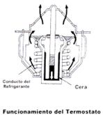 El ter Cuando la temperatura del refrigerante está baja, el termostato cierra la válvula, permitiendo al refrigerante circular alrededor del interior del motor. Cuando la temperatura del refrigerante viene a ser alta, el termostato abre la válvula, permitiendo al refrigerante circular hacia el radiador.mostato trabaja automáticamente para mantener la temperatura del refrigerante constante. Este es instalado en el circuito del refrigerante, entre el radiador y el motor.