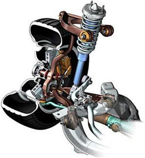 Suspensiones independientes: en esta disposición las ruedas tienen una suspensión independiente para cada una de ellas. Por lo tanto no se transmiten las oscilaciones de unas ruedas a otras.